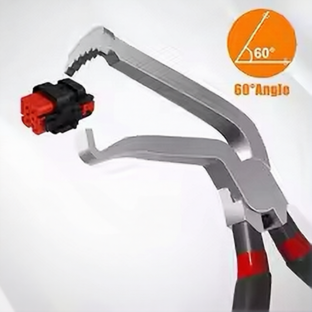 Versatilitate Maximă: Include trei piese diferite (două tipuri de clești cu vârfuri curbate/specializate și o unealtă de tip extractor) pentru a acoperi majoritatea tipurilor de mufe de pe piață (VAG, BMW, Mercedes, Ford, etc.).