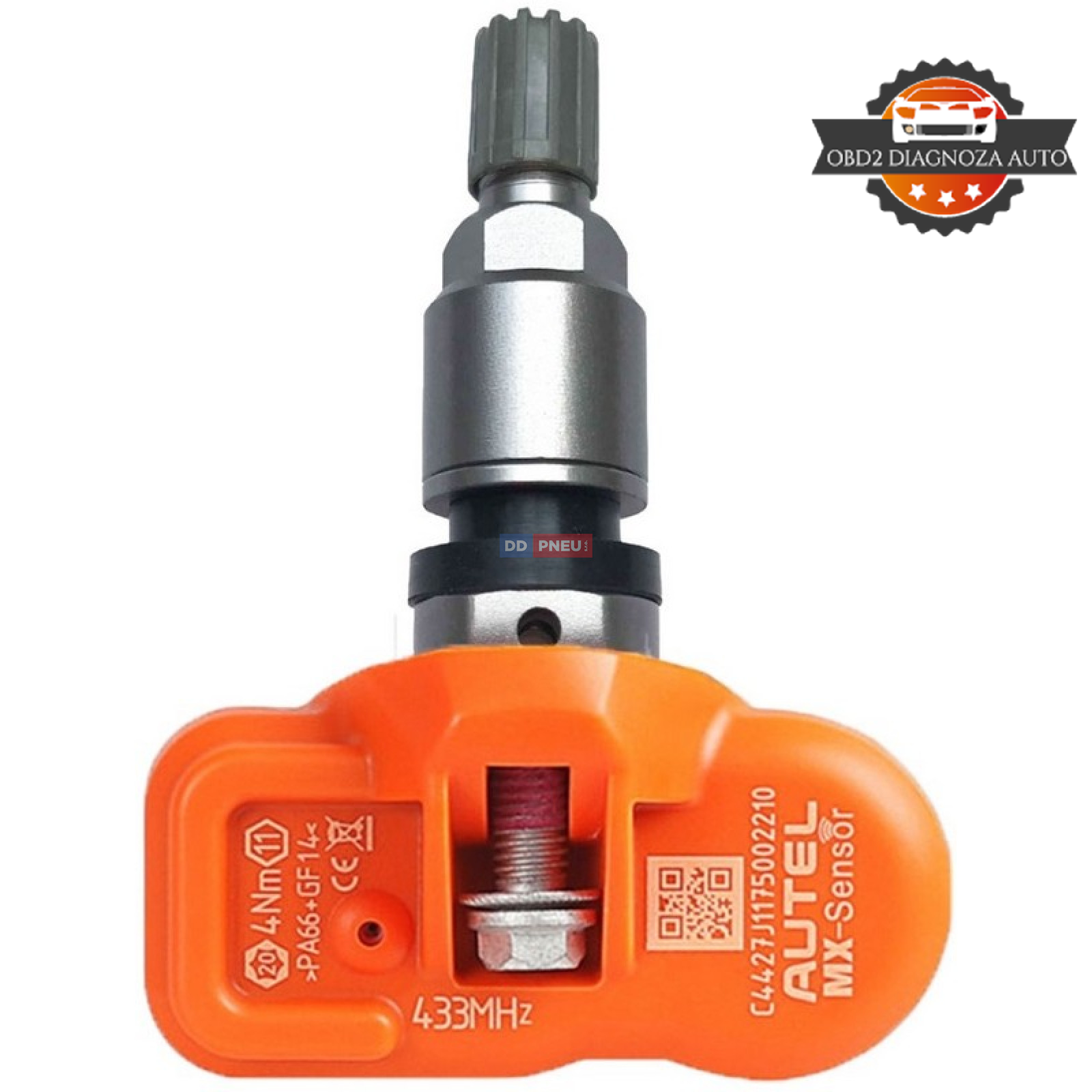 Senzor TPMS Autel MX‑Sensor 433/315 MHz – valvă metalica, programabil, compatibil 98 % vehicule, durată baterie peste 5 ani și instalare rapidă. Senzorul TPMS poate lucra pe ambele frecvente si este conceput să înlocuiască rapid senzorii OE, oferind compatibilitate cu majoritatea vehiculelor echipate cu sistem de monitorizare presiune pneuri.